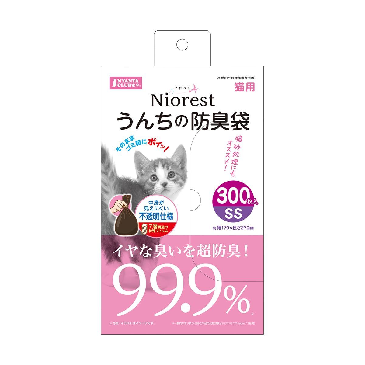 新品 ニオレスト うんちの防臭袋【SSサイズ 300枚】猫用 臭い対策 ペット イヤな臭いを超防臭 99.9% 中身が見えにくい