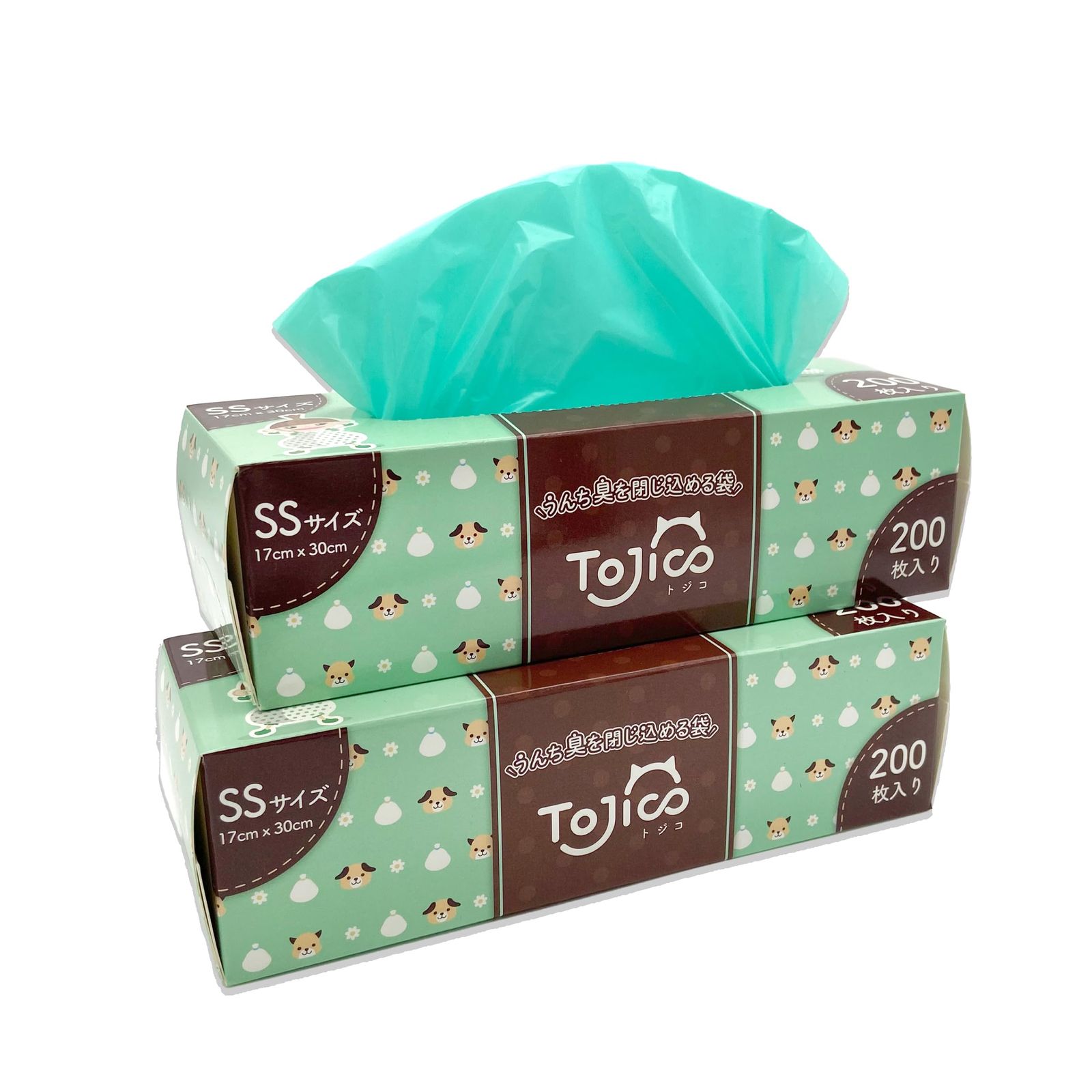 新品 トジコ うんちが臭わない袋 うんち臭を閉じ込める袋 犬 猫 ペット 消臭袋 におわない袋 うんち袋 防臭袋 処理袋 トイレ袋 ゴミ袋 (SS 200枚 2個)