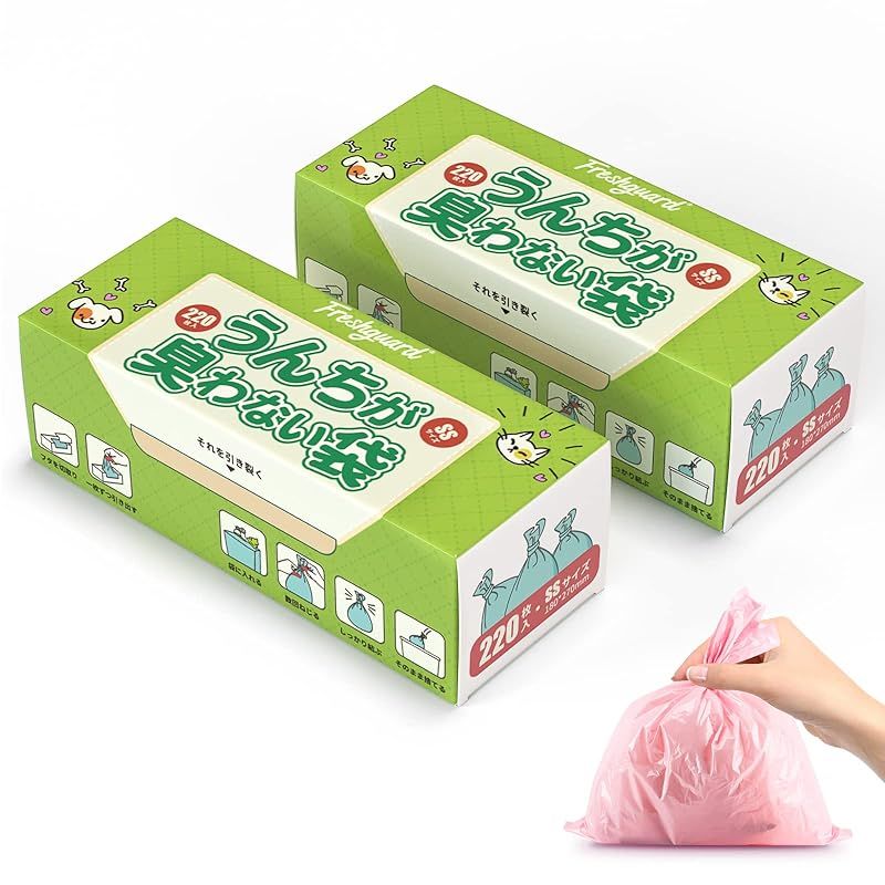 防臭袋 うんちが臭わない袋 徹底消臭 7層構造 使用便利 消臭袋 ゴミ袋 お散歩ウンチ袋 おむつ・うんち・生ゴミなどの処理に最適 箱型 SSサイズ 440枚入 ピンク