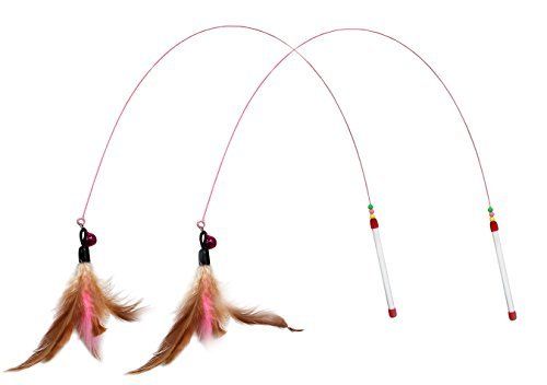 【人気商品】猫じゃらし 天然鳥の羽棒鈴付き 猫おもちゃ 羽根 2個入り