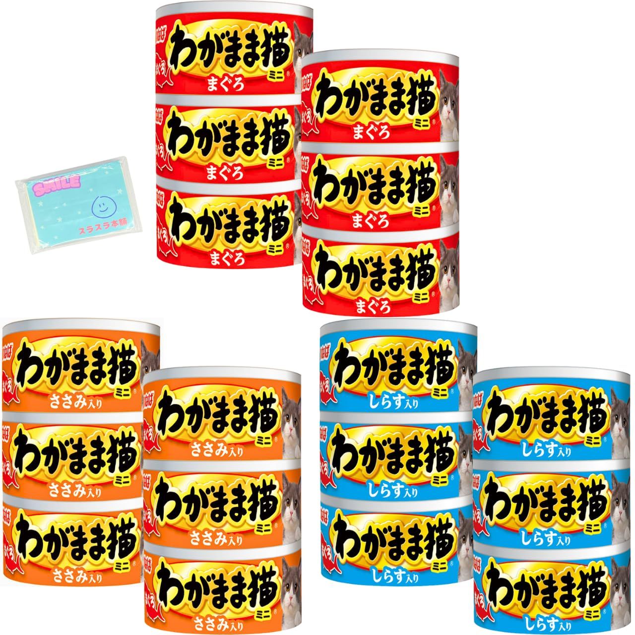 Monolog Style いなば 猫用缶詰 わがまま猫 まぐろ ミニ (1缶60g入り) 3種類アソートセット 【(1)まぐろ (2)ささみ入り (3)しらす入り 】 各種6缶ずつ 合計18缶セット ★スラスラ本舗オリジナルポケットティッシュ付き★