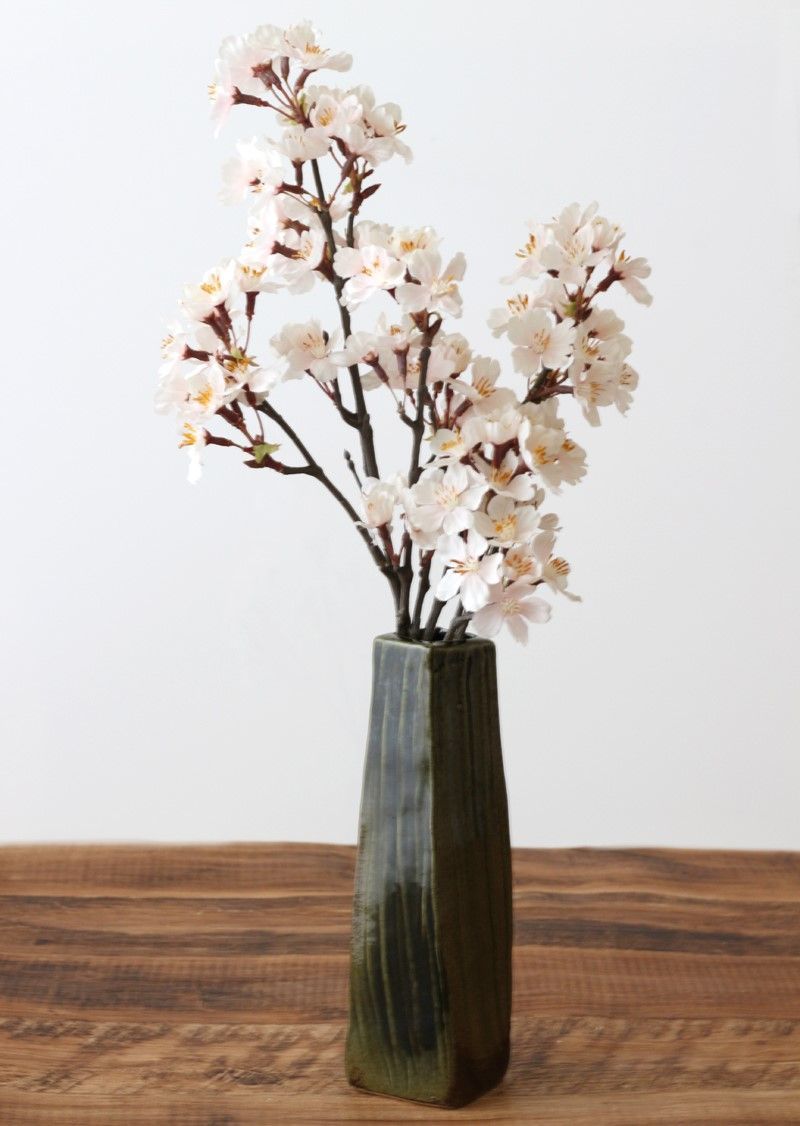 花柄緑色花瓶 新品
