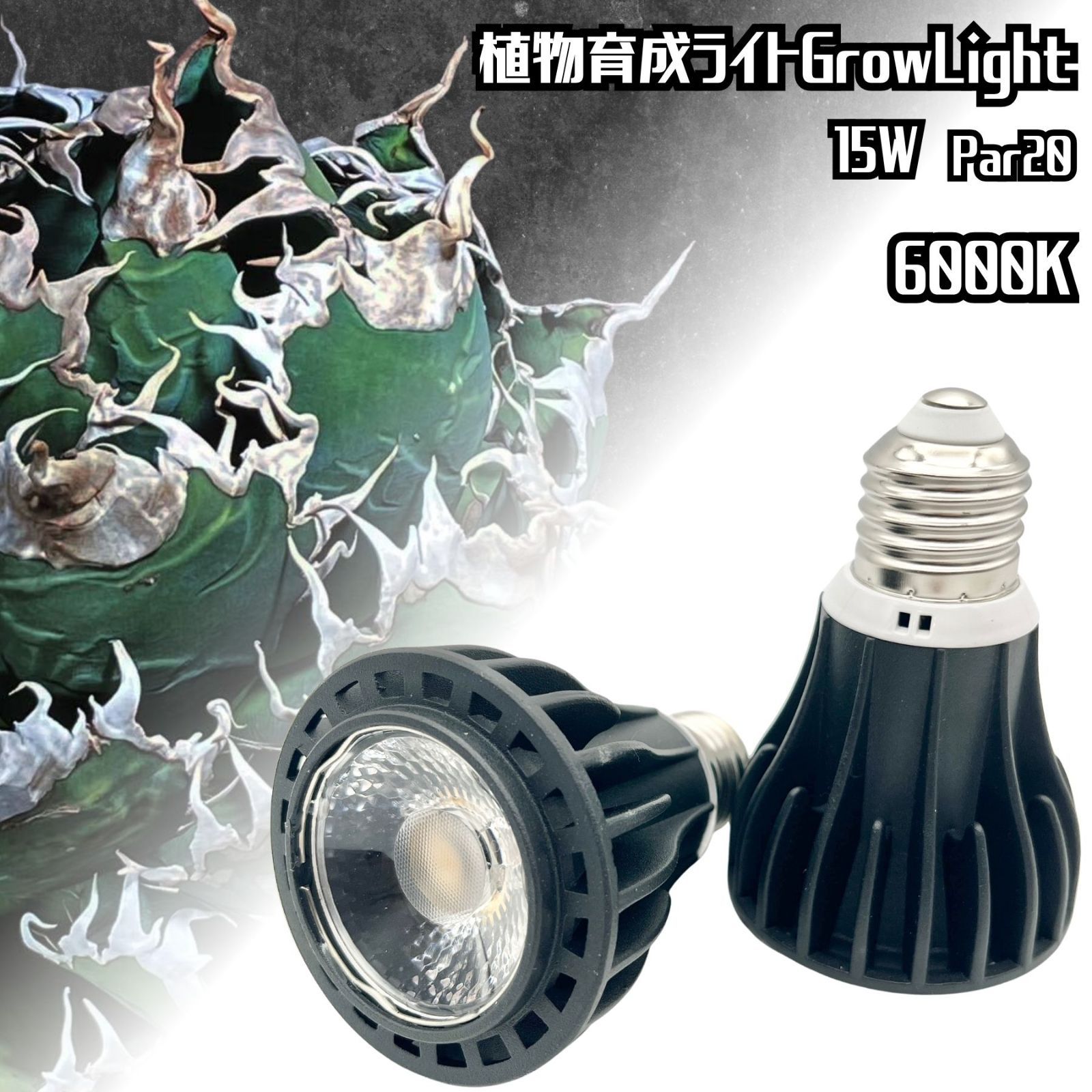 【2個set】植物育成ライト LED PAR20 15W 6000K 高輝度 COB 観葉植物 多肉植物 塊根植物 アガベ ビザールプランツ 水草水槽 室内栽培 ガーデニング E26 植物ライト 強光 省エネ 長寿命