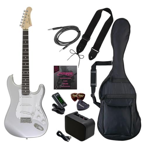 Photogenic フォトジェニック エレキギター 初心者入門 ライトセット STタイプ シルバー ST-180/SV [ソフトケース/シールド/ミニアンプ/チューナー/ストラップ/ピック/ピックケース/弦/調整用レンチ付属] 送料無料