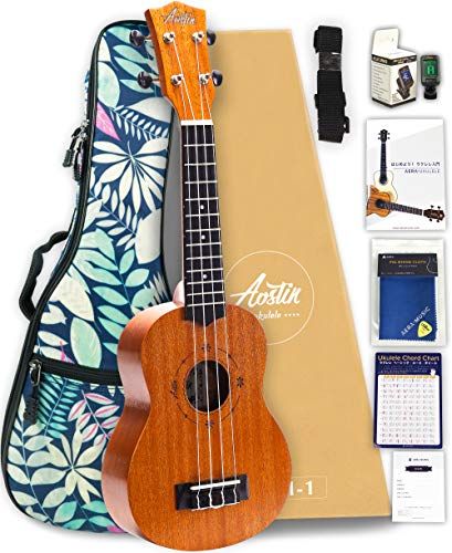 【初心者8点セット!】Aostinオースティン・UMI-1・ソプラノウクレレ・マホガニー材【安心の3年保証】【付属品8点セット:国内保証書・チューナー・教則本・コードチャート・ピック・ストラップ・ポリシングクロース・「海の声」ケース21】 送料無料