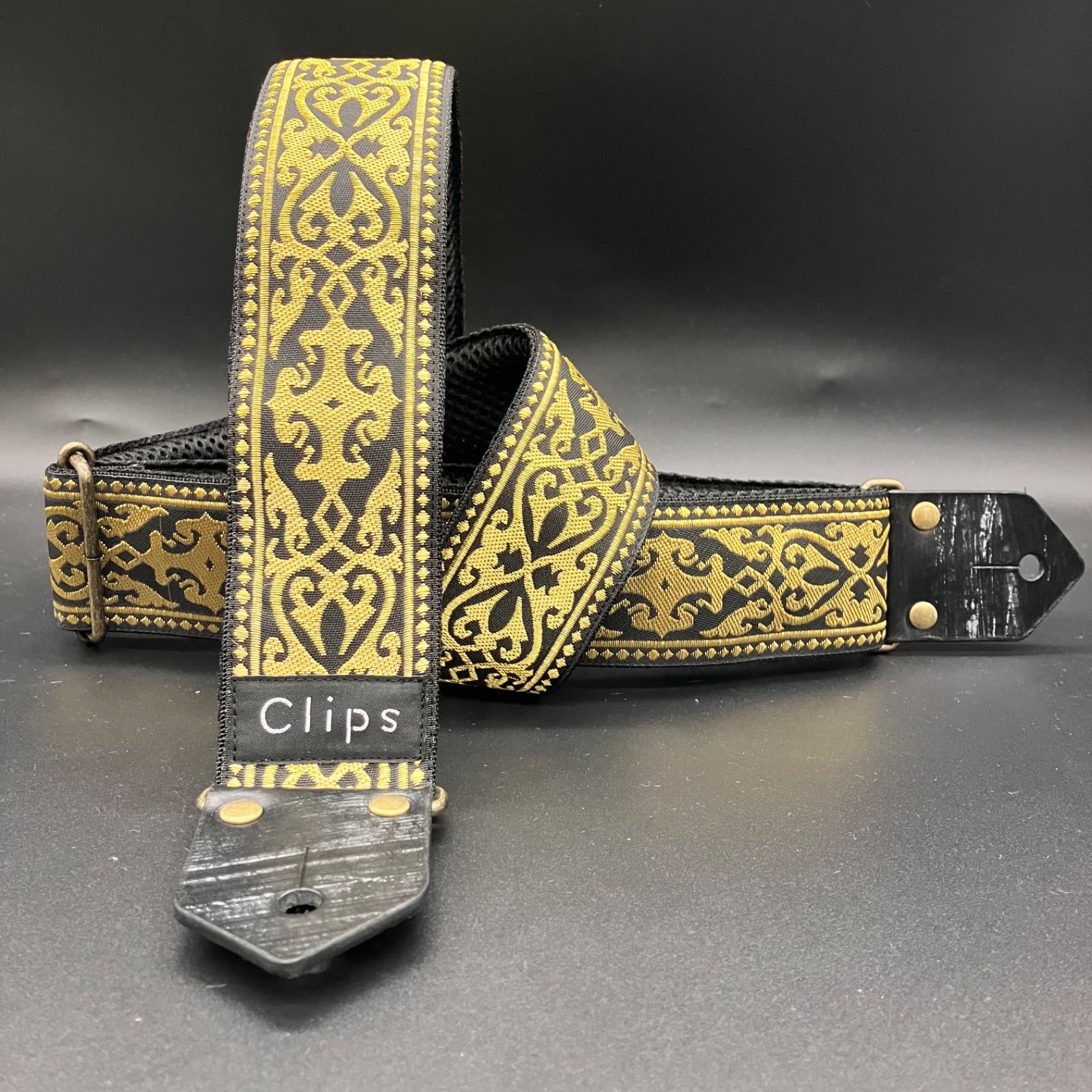 Clips ギターストラップ‼️ オーナメント風(ブラック×ゴールド)