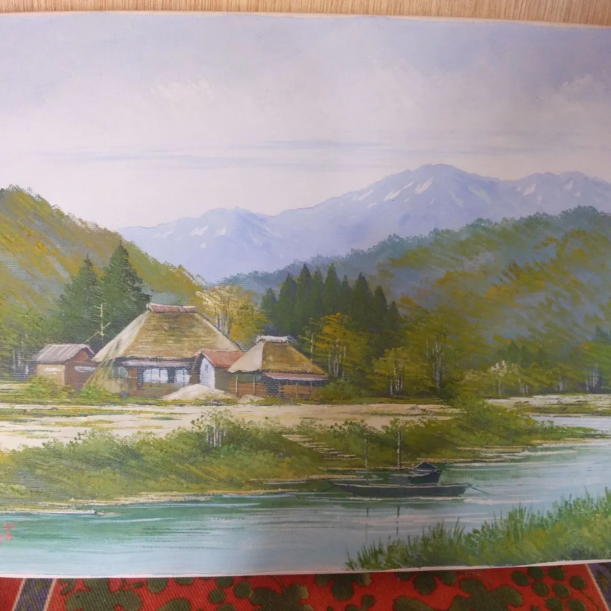 【山の風景】油彩画 木製フレーム付き Shunji