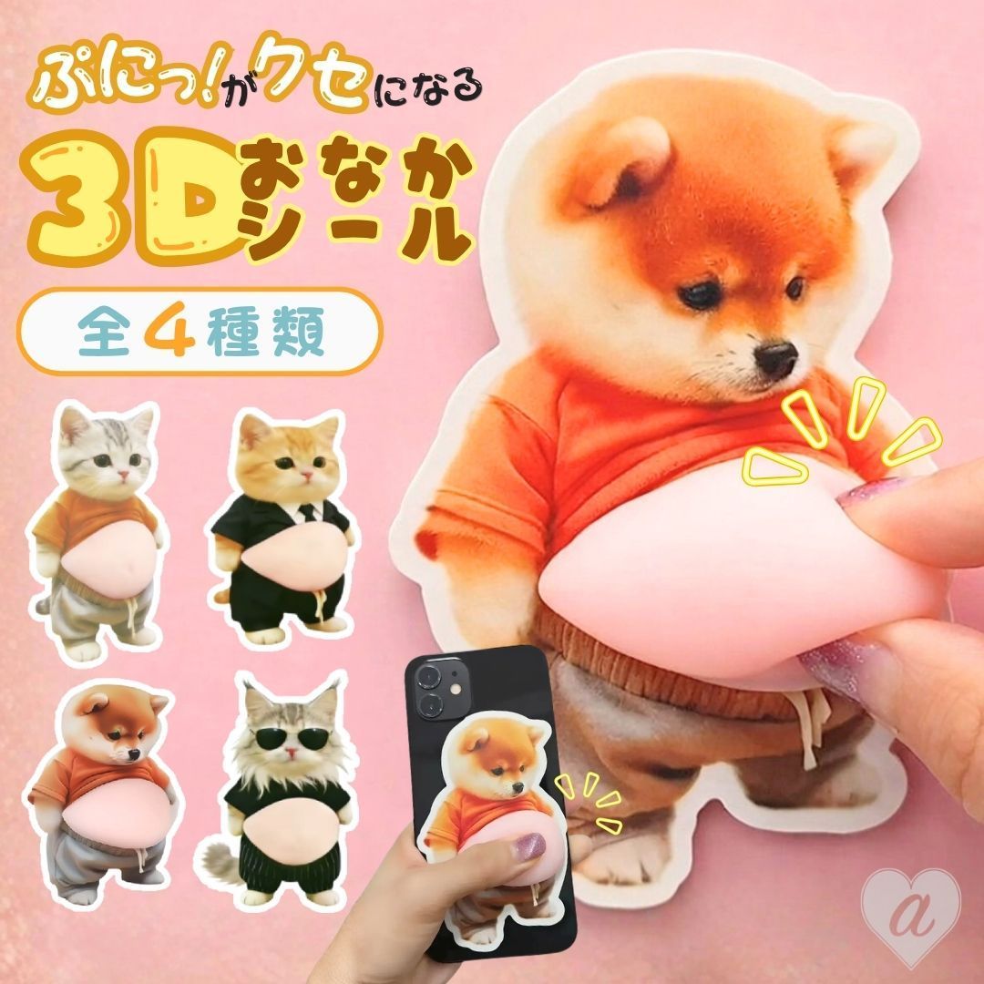 【普通郵便発送】 おなかシール 3D ぷにぷにシール 全4種類 ステッカー ぷにぷに お腹シール 犬 おなか キャラクター 3D立体シール お腹シール 柴犬 猫 キャット もちもち 3D 柔らかいお腹 ふわふわ 携帯電話飾り スマホケース 女の子 男の子