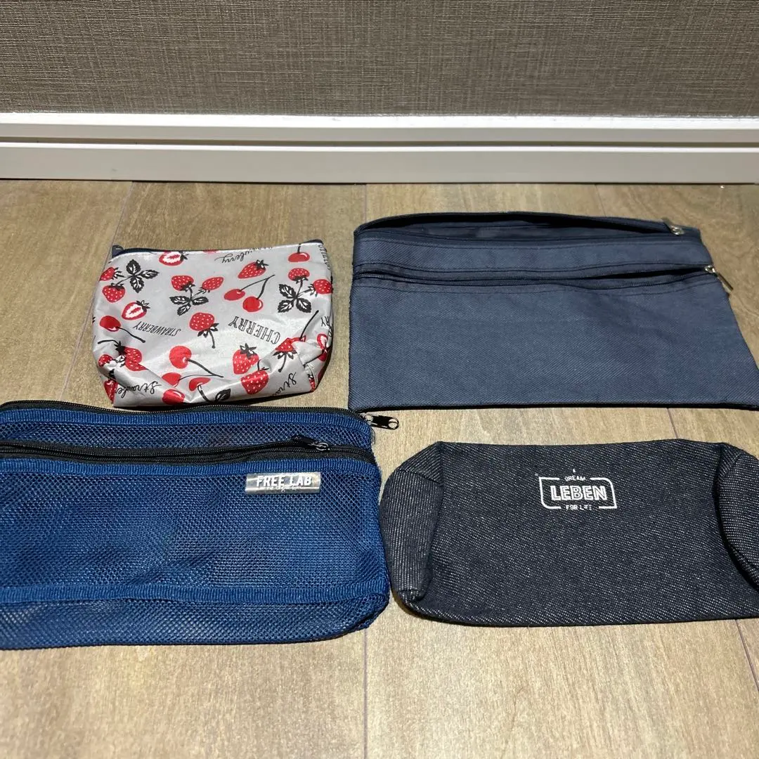 いちご柄 ネイビー シンプルポーチ 筆箱 セット ダイソー