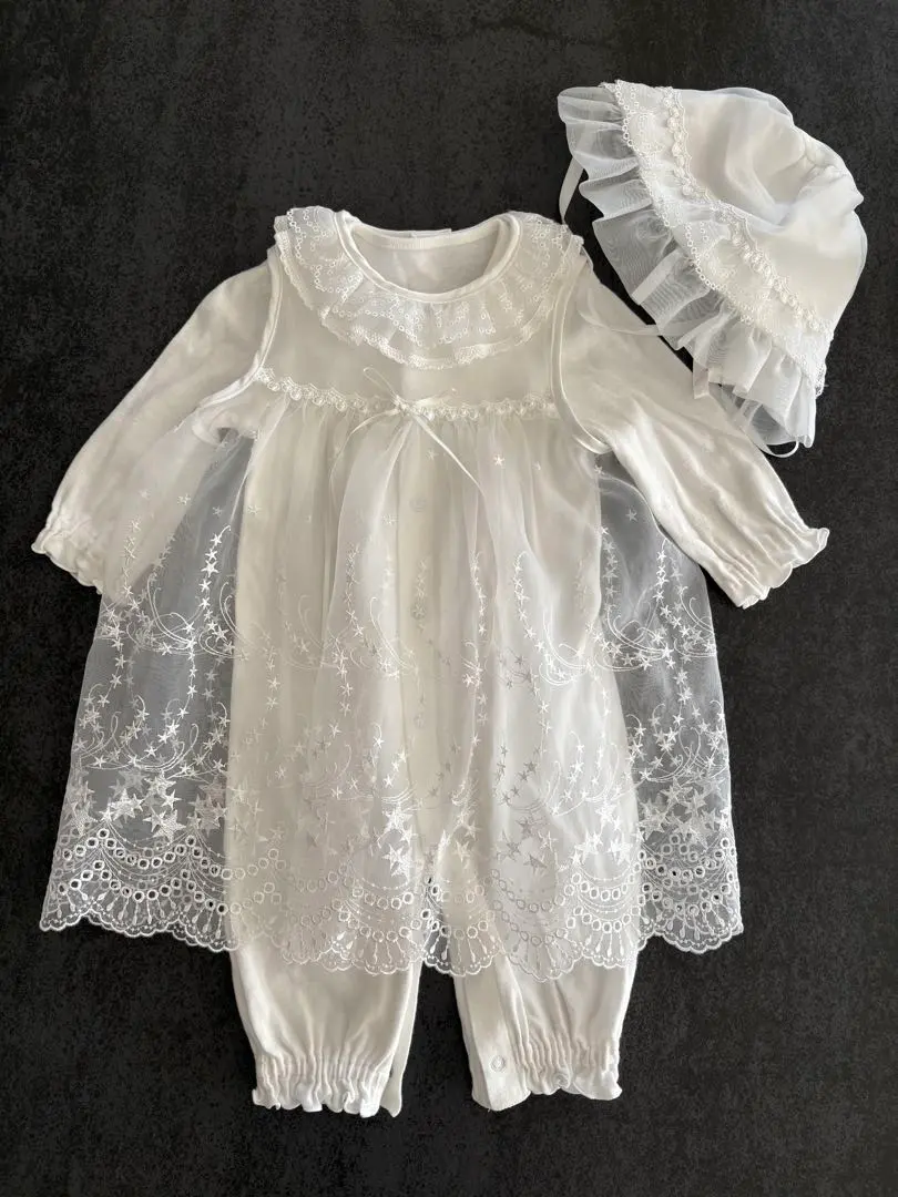 【美品】赤ちゃんの城 セレモニードレス帽子付き お宮参り 退院着 新生児