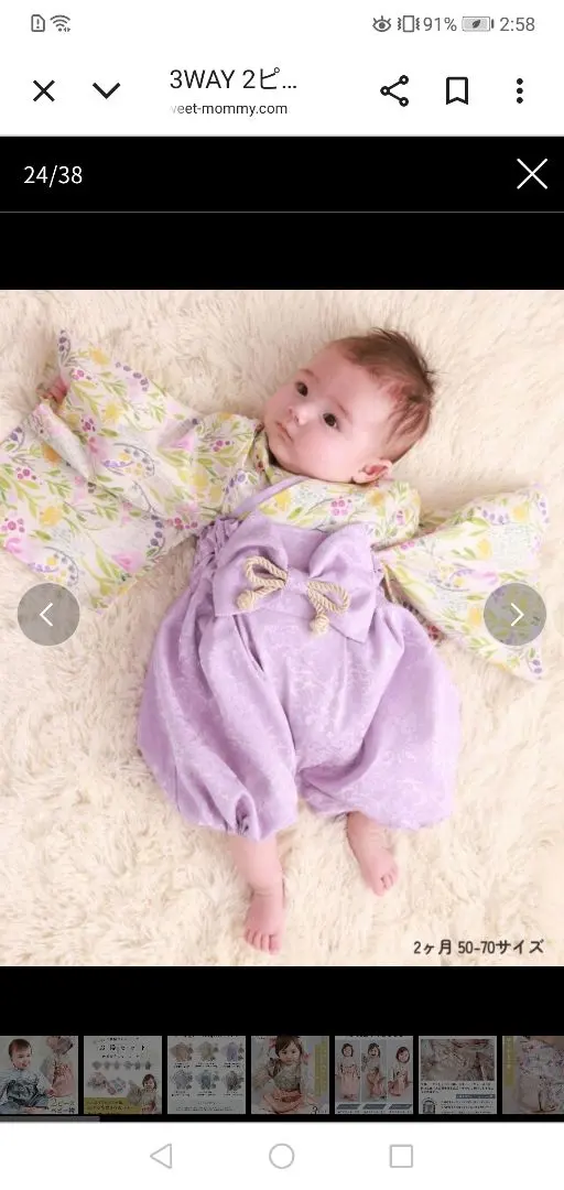 3WAYデザイン ベビー袴 パールラベンダー 50-70cm
