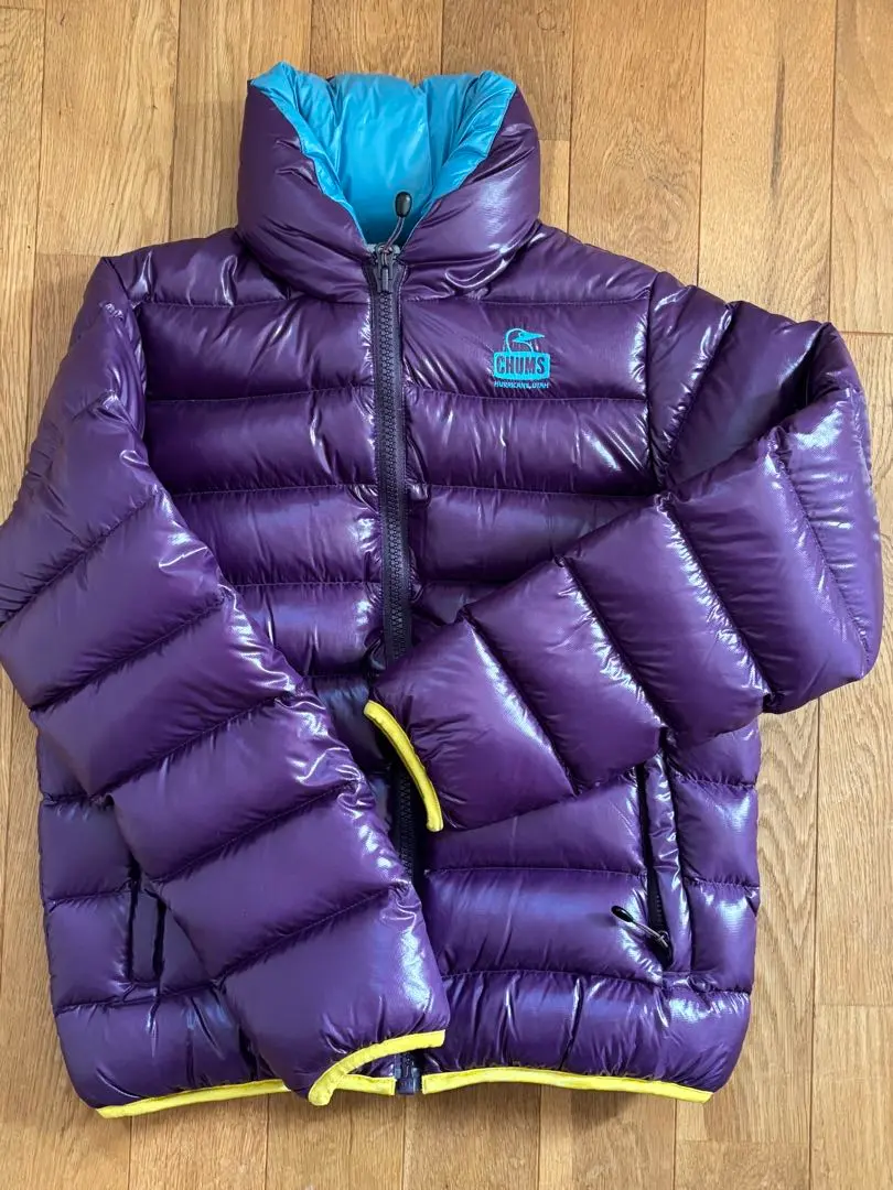 美品 パタゴニア ダウン ジャケット キッズ L 12 紫 チェック 総柄