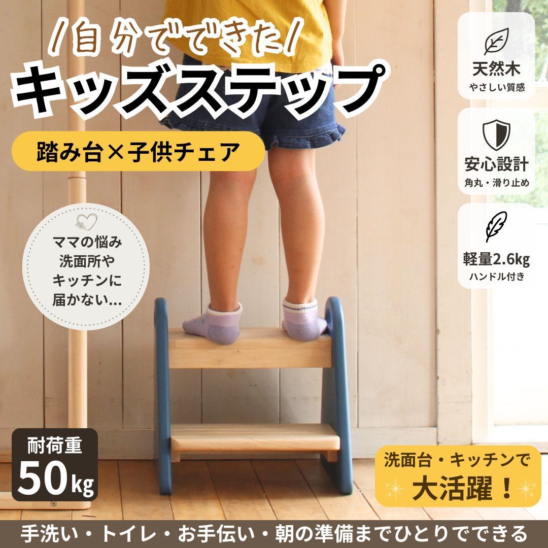 子供 踏み台 キッズステップ 2段 軽量 ハンドル付き 安全 木製 ステップ台 洗面所 キッチン トイレ 北欧 おしゃれ 子供椅子 ブルー