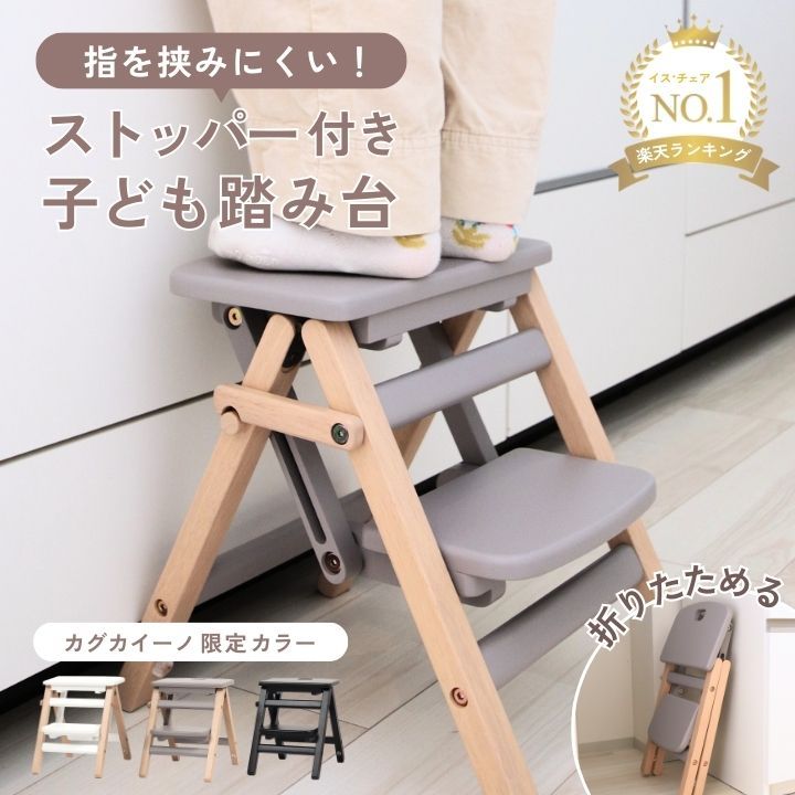 今だけ10%OFF★ロック付き 折りたたみ キッズステップ グレージュ/ナチュラル 指はさみ防止ストッパー付き 子供用 踏み台 木製 子育て おしゃれ 【新品・送料無料】