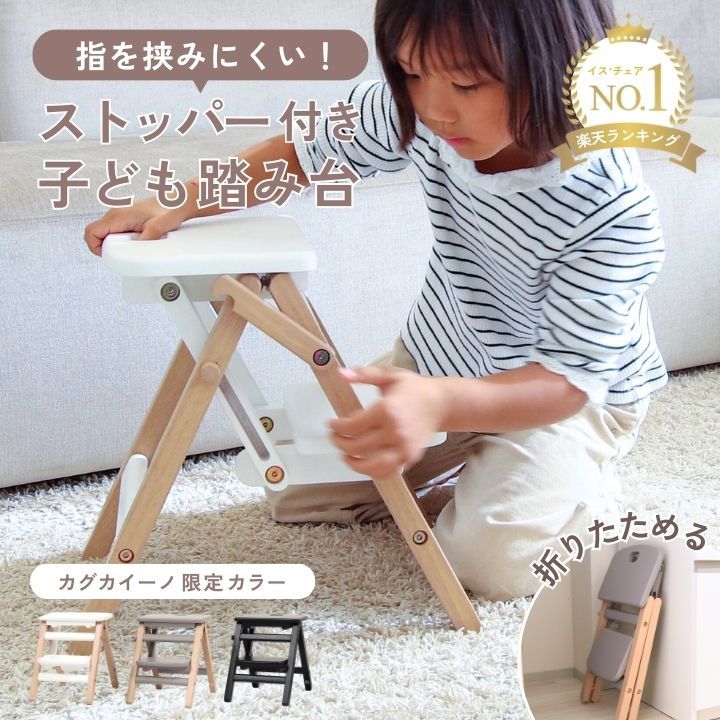 今だけ10%OFF★ロック付き 折りたたみ キッズステップ ホワイト/ナチュラル 指はさみ防止ストッパー付き 子供用 踏み台 木製 子育て おしゃれ 【新品・送料無料】