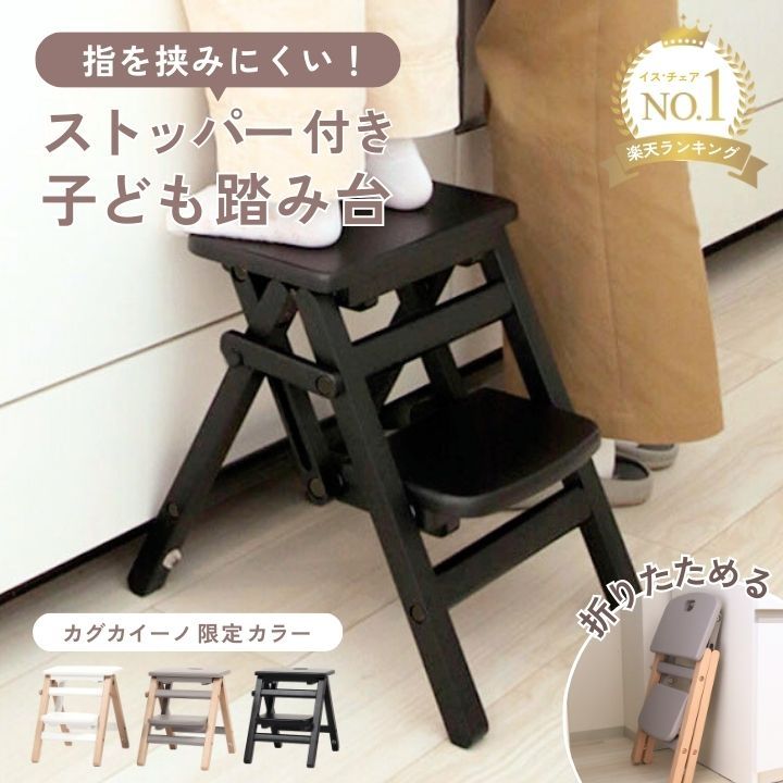 【新品・送料無料・6月発送】 ロック付き 折りたたみ キッズステップ ブラック/ブラック 指はさみ防止ストッパー付き 子供用 踏み台 木製 子育て おしゃれ モダン シンプル かっこいい