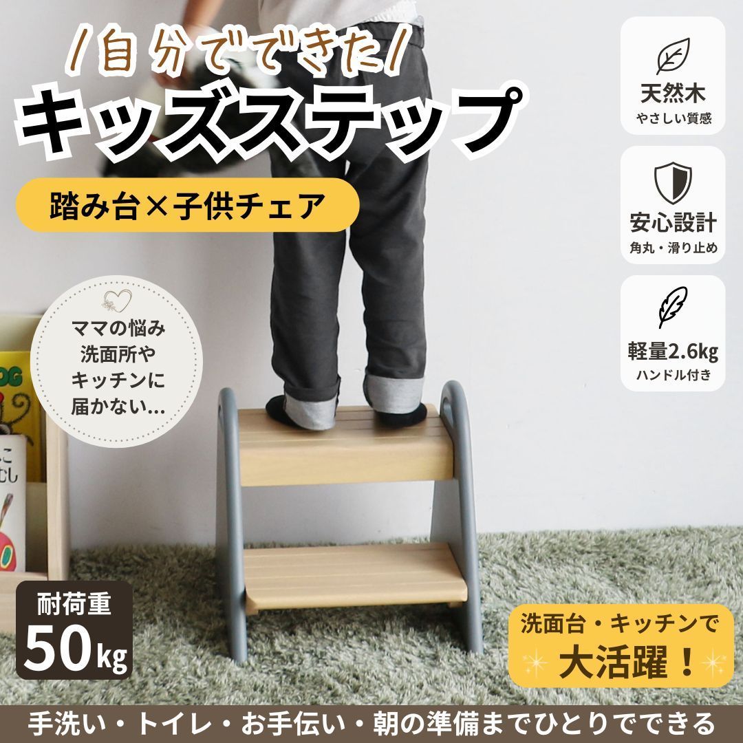踏み台 子供 キッズステップ 木製 2段 ナチュラル 洗面所 キッチン 子供椅子 軽量 安全 グレー
