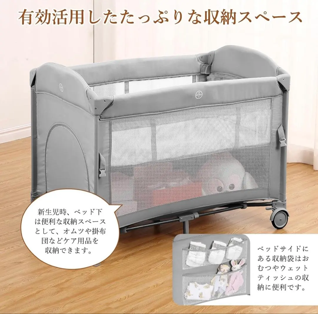 折りたたみ ベビーベッド 添い寝ベッド ベビーサークル おむつ替えテーブル付