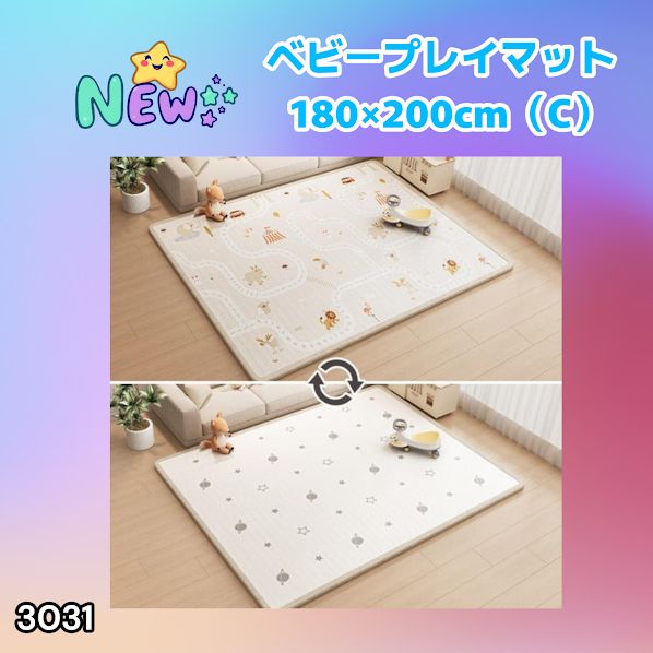 #3031 ベビーマット プレイマット 180×200cm 動物 カラーC ベビー 赤ちゃん シームレス ロール ペット フロアマット 防水 床 極厚 防音 子供部屋 保育園 幼稚園 ※一部地域離島別途配送料有