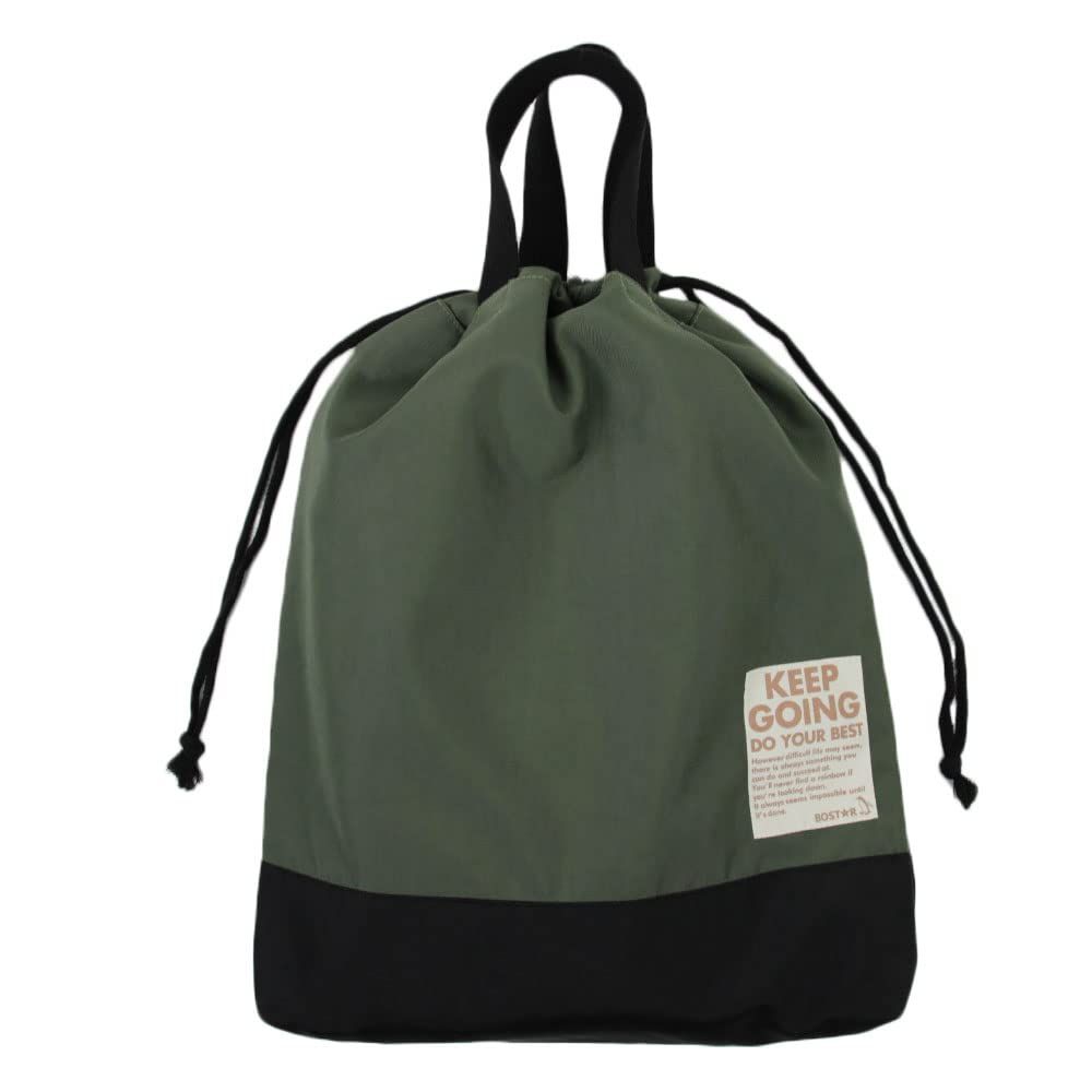 新品 [ボストアール] 日本製 ナイロン 巾着バッグ 体操服袋 給食袋 上履き入れ プールバッグ 撥水 軽量 マチ付き 男の子 女の子 キッズ 子供 無地 BOSTR オリーブグリーン×ブラック 巾着OlivegreenBK