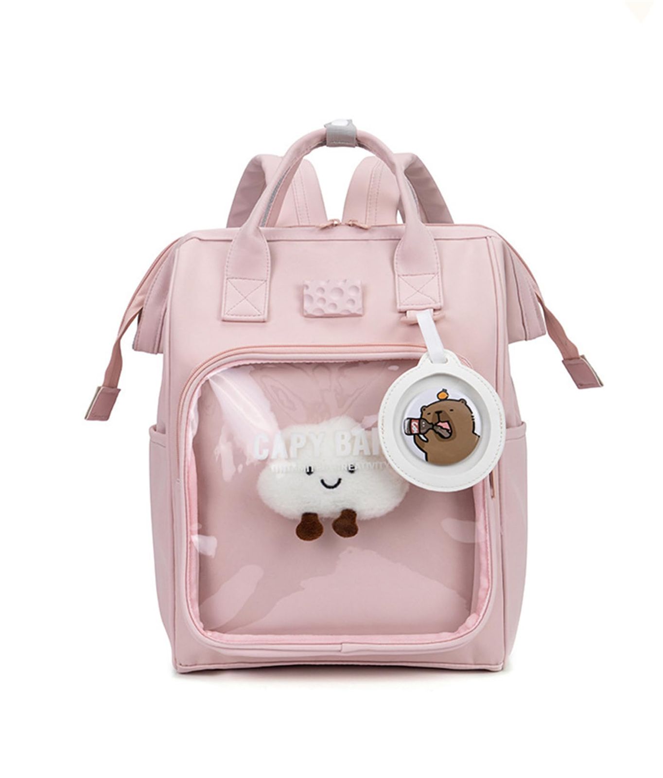 新品 [JQBFL] リュック 痛バッグ バックパック レディース キャンバス リュックサック クリア 推し活 大容量 帆布 A4サイズ 透明 大容量 韓国 通勤 通学 小学生 かわいい 高校生 男女兼用(Free Sizeピンク)