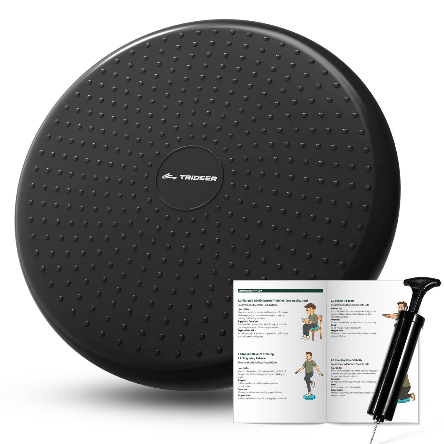 Trideer バランスディスク バランスクッション(2021 ニューバージョン ポンプ付き 厚い アンチバースト 耐荷重 300KG)体幹トレーニング フィットネス エクササイズ 健康クッション 子供から高齢者まで用 自宅 オフィス 椅子「四色」34cm