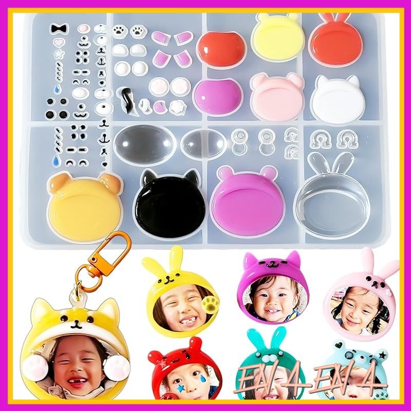 Evergarden シリコンモールド アニマル着ぐるみモールド ネコ イヌ クマ ウサギ 顔パーツ ヒートン キーホルダー シリコン モールド シリコン型 型 鏡面 仕上げ (シリコンモールド) 0