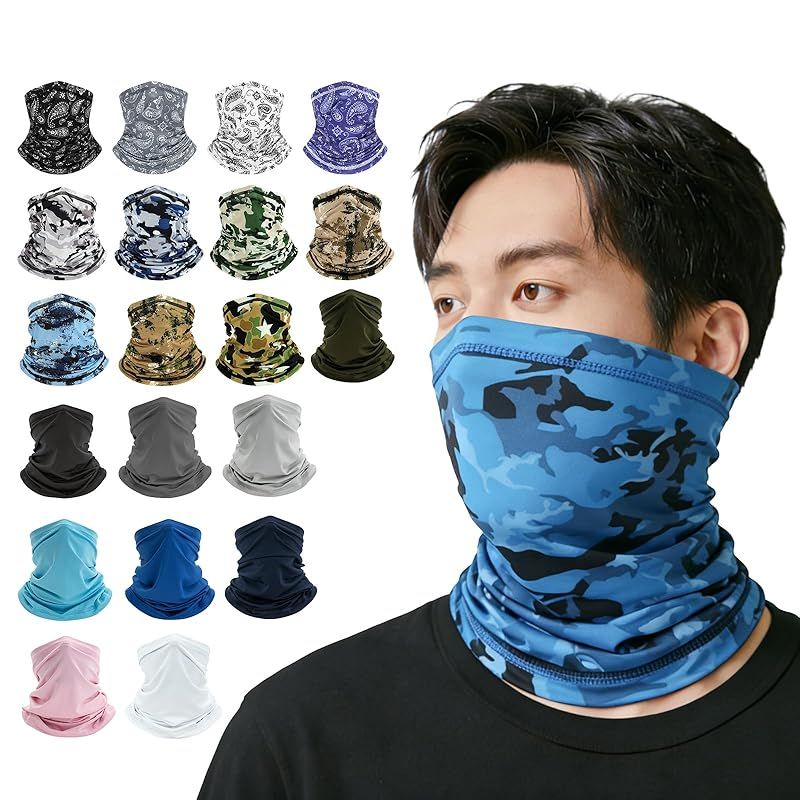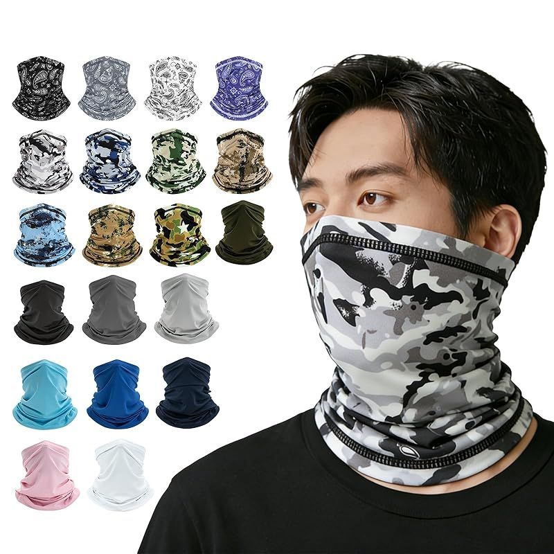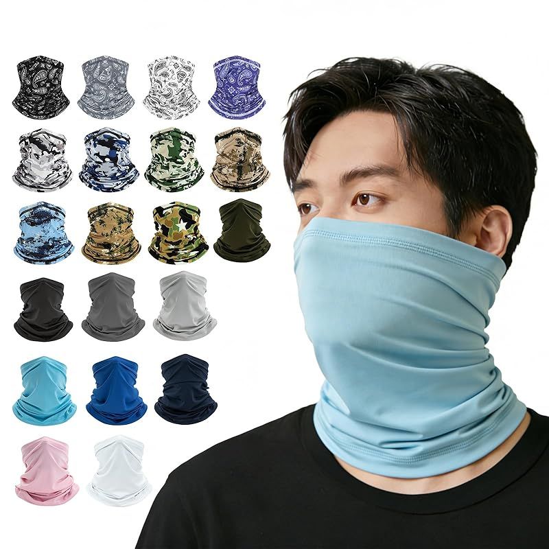 【新品】 [Soraame] 【冷感・UVカット・升?】バイク用フェイスマスク 夏用 UVカット 薄手 吸汗速乾 息苦しくない 日焼け防止 ネックウォーマー フェイスガード クールネックガード スポーツ ゴルフ アウトドア キャンプ バイク ユニセック N-1