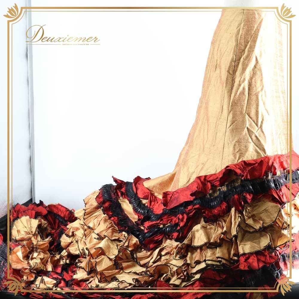 フラメンコ 衣装 バタデコーラ ファルダ スカート ブラック系 ベージュ系 ブラウン系 レッド系 ゴールド系 黒 ゴールド 茶色 赤 ボランテ フリル レース ボリューム ダンス パーティ 発表会 高級感 重厚感 ボリューム感 華やか 可愛い ダンス用 衣装用