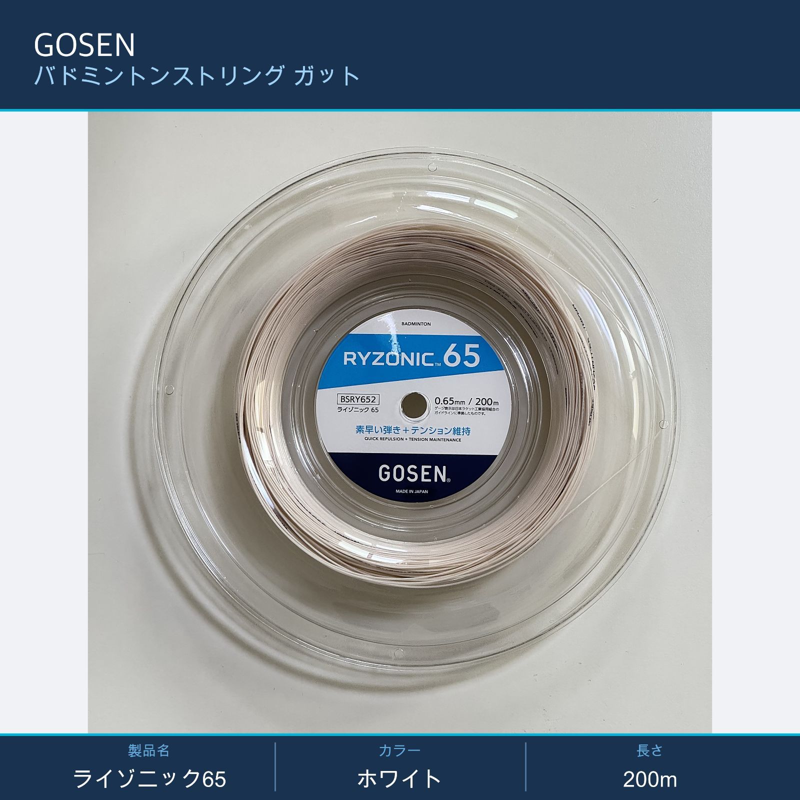 GOSEN バドミントンストリング ガット 200m ライゾニック65 ホワイト
