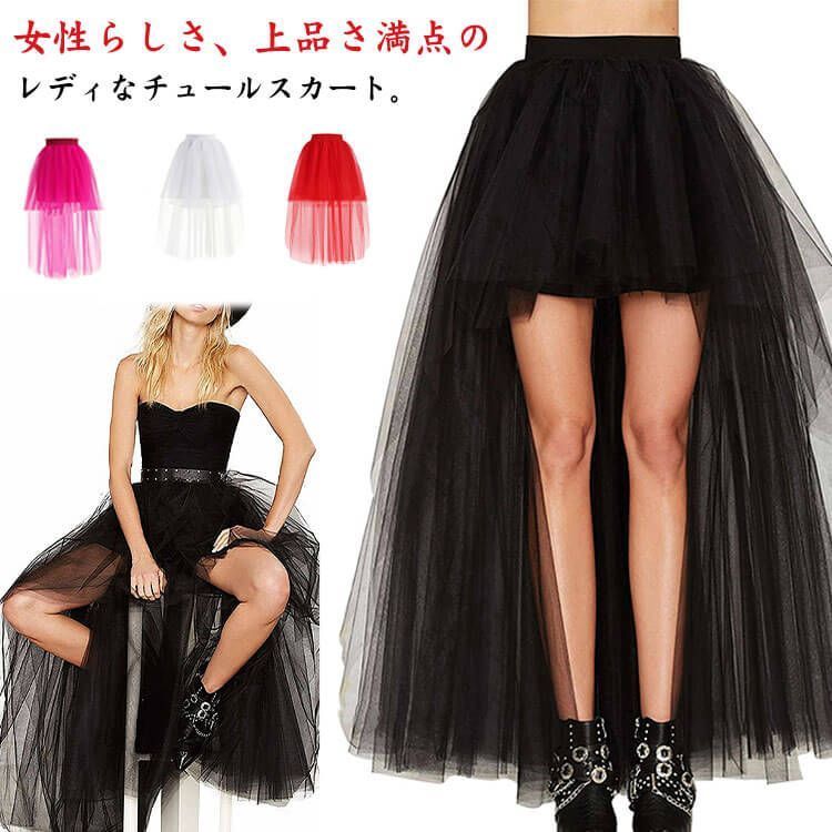 ダンス衣装 スカート チュール アシメトリー 前短後ろ長 3段 レイヤード ヒップスカート 社交ダンス ステージ衣装 ウエストゴム 白 黒 赤