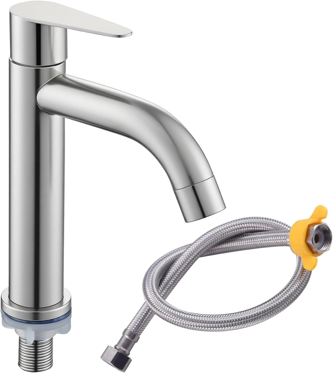 水道 蛇口 洗面台 単水栓 シングルレバー 立水栓 トイレ 手洗い ボウル 1穴 水栓 ワンホール 洗面 水道 手洗い蛇口 SUS304ステンレス製 60cmホース付き 2種類から選べる(高さ17cm)