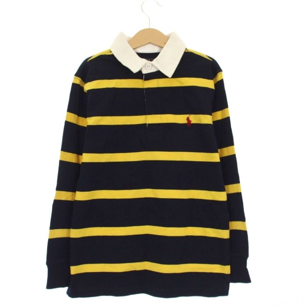 ポロ ラルフローレン POLO RALPH LAUREN タグ付き ポロシャツ 長袖 ボーダー スモールポニー 男の子 S/P 8 紺 黄色 /KH