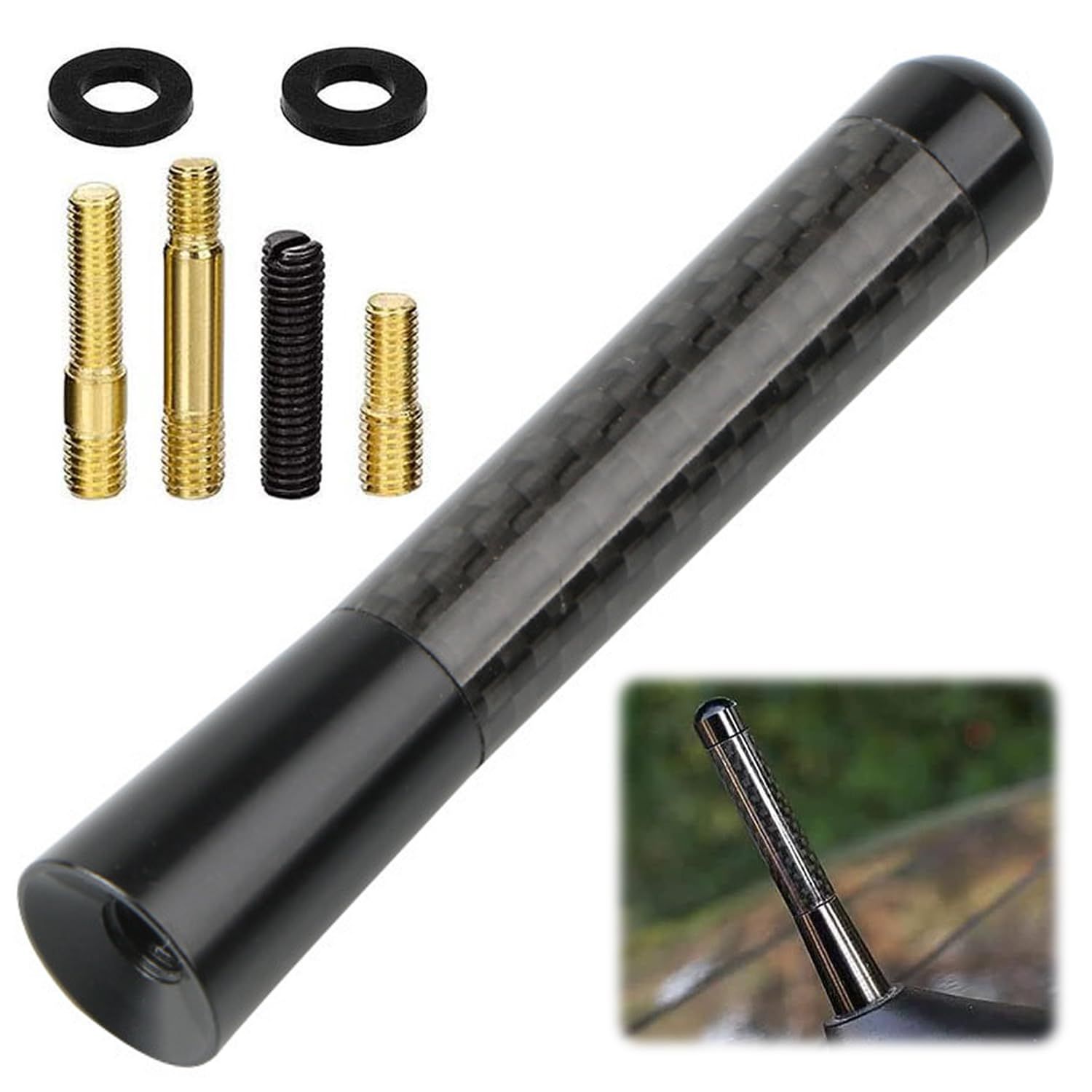 【人気商品】自動車アンテナ 8cm ルーフアンテナ パワフルFM/AM受信 カーラジオアンテナ カーボンファイバーアンテナ (ブラック 8cm)