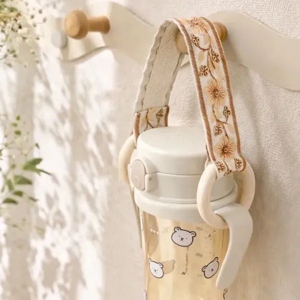 【期間限定価格】マグホルダー ハンドメイド インド刺繍リボン 木製 出産祝い プレゼント ギフト 淡色ママ ゴールド 花柄 刺繍