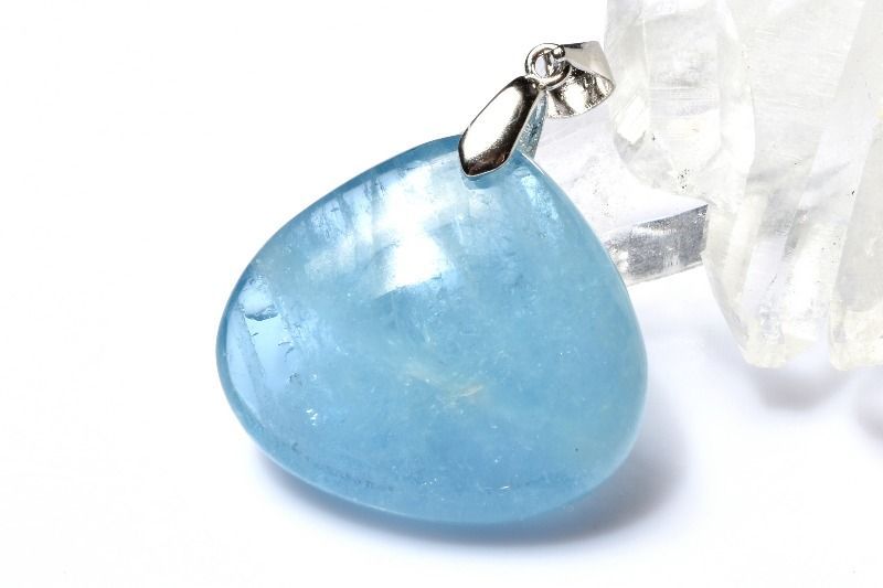 【1点物】シルバー925◇モザンビーク産 アクアマリン 21x24mm ドロップ ペンダントトップ パワーストーン 天然石 _PD1303
