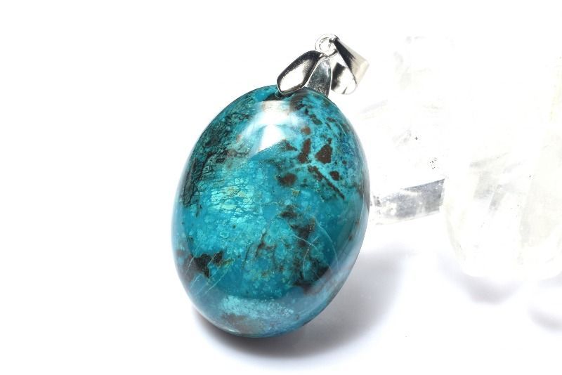 【1点物】シルバー925◇地球模様 クリソコラ 24x18mm オーバル ペンダントトップ パワーストーン 天然石 _PD1283