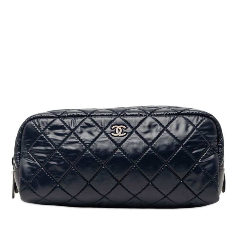 シャネル コココクーン ポーチ 小物入れ ネイビー ナイロン レザー レディース CHANEL【1-0264443】