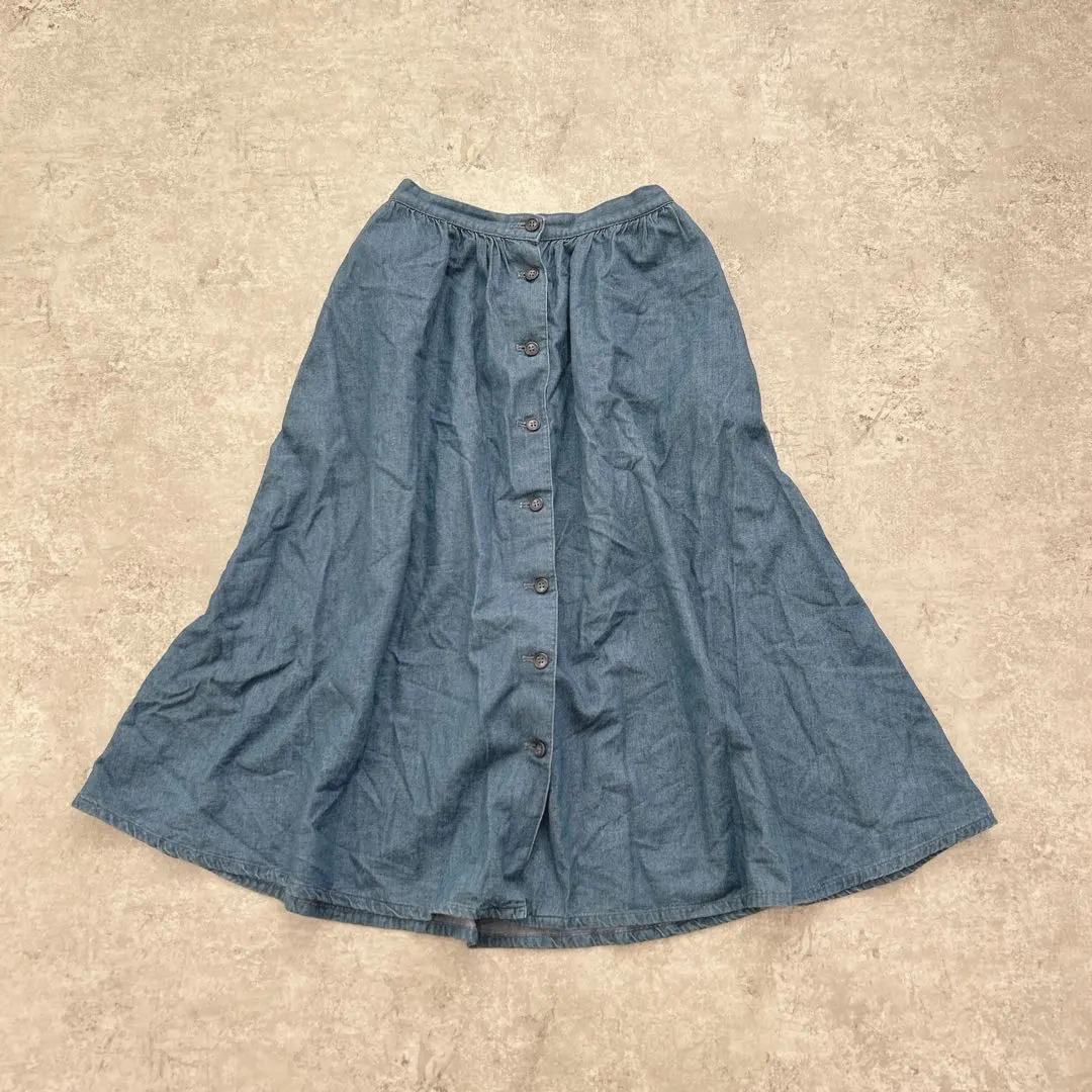 k1645 シンプルライフ デニムフレアスカート フロントオープン Sサイズ相当