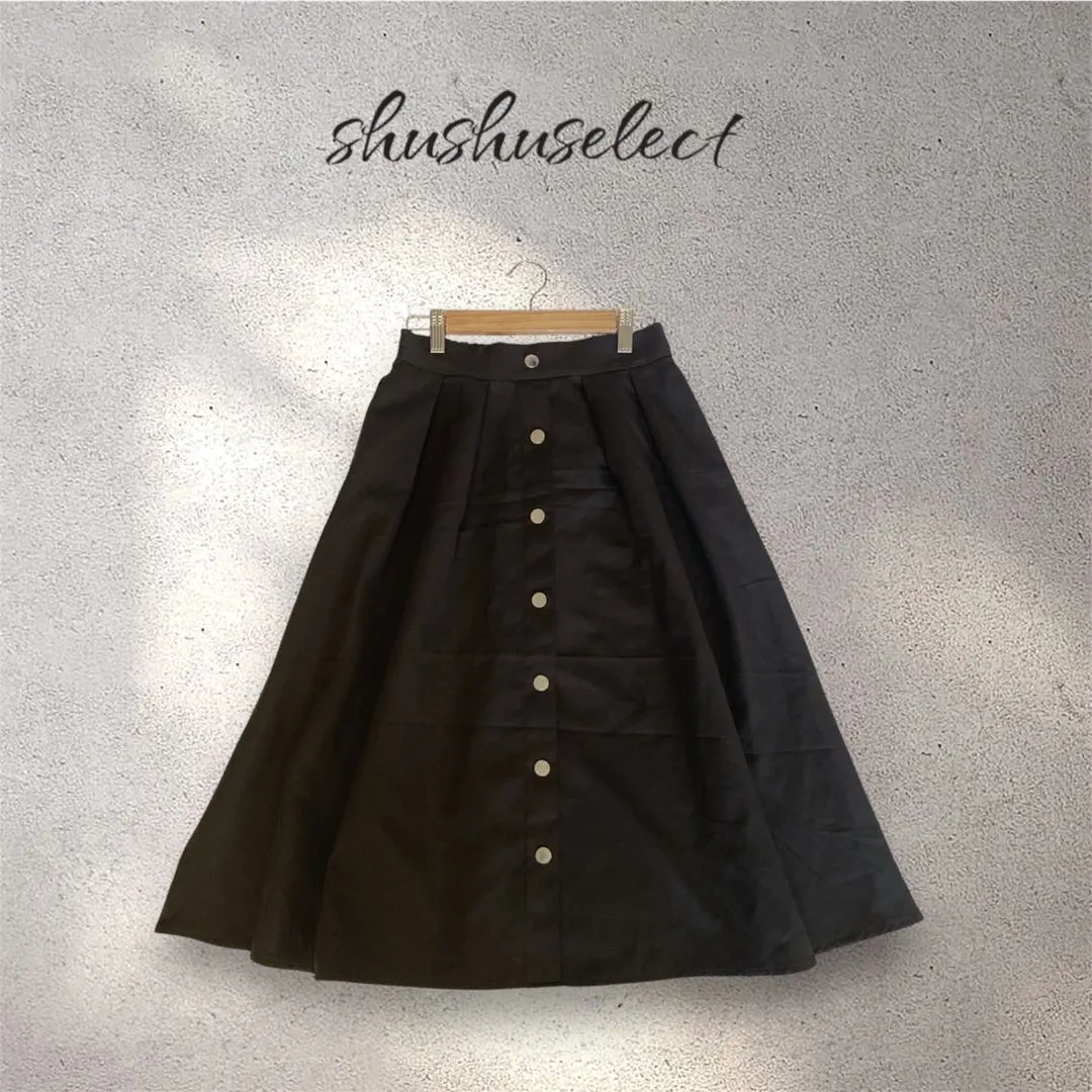 n2423 n.o.t. フレアスカート ミディ丈 ボタン ウエストバックゴム