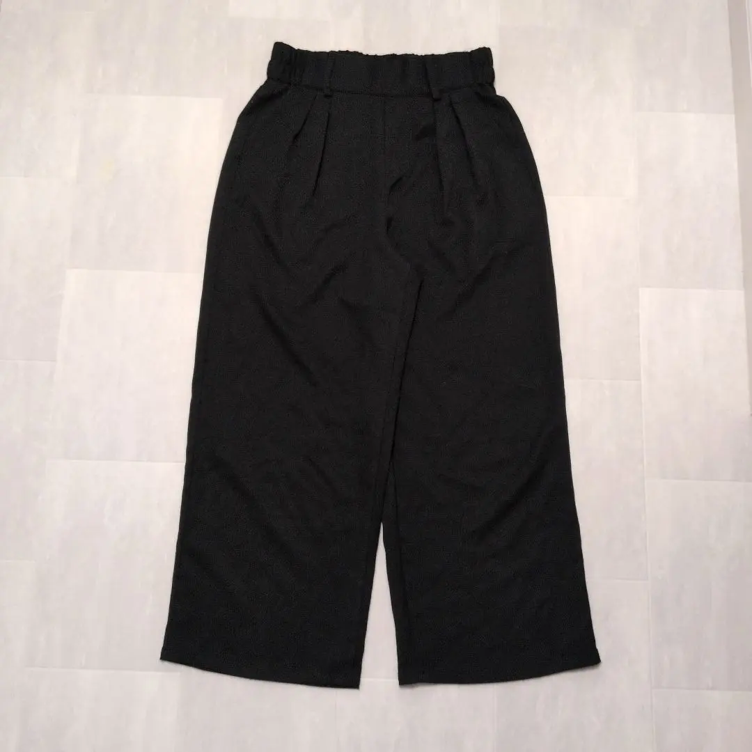 レディース ワイドパンツ L 黒 ウエストゴム 秋冬