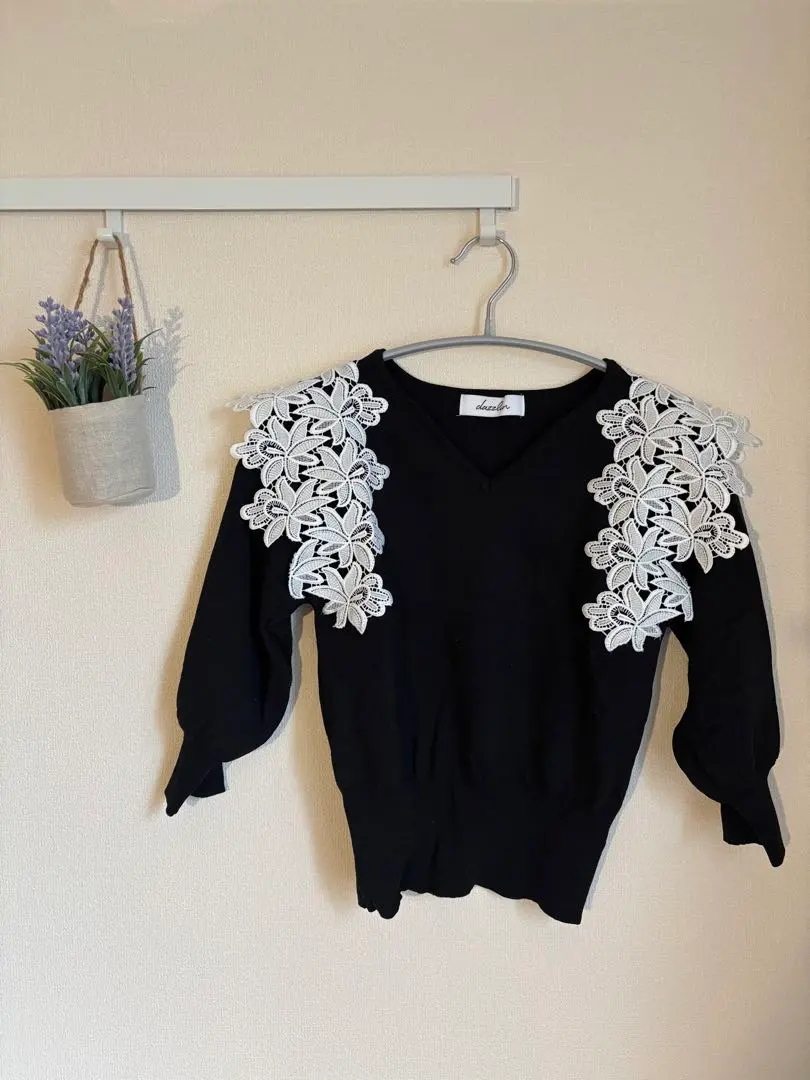 美品 ダズリン レースカラーコンパクト5部袖トップス dazzlin