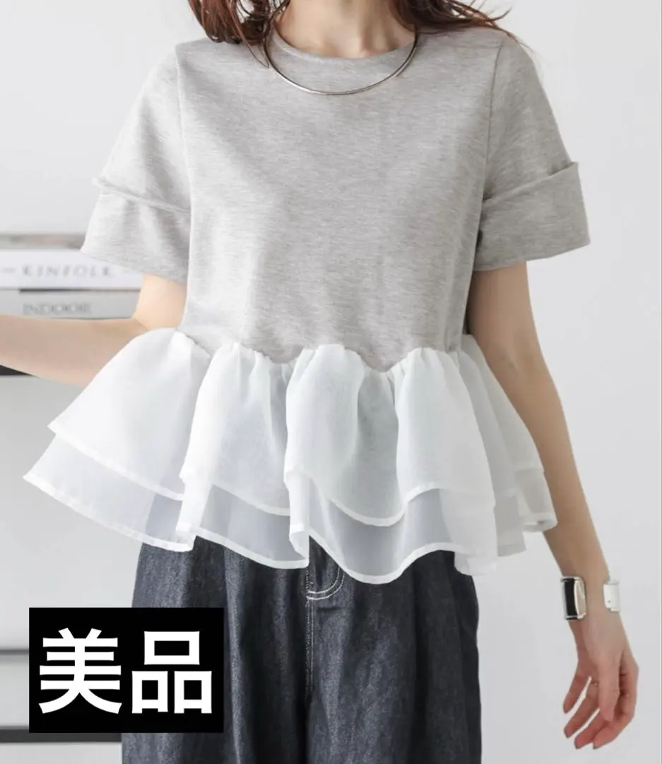 美品 シアーフリルドッキングトップス グレー ラジエム