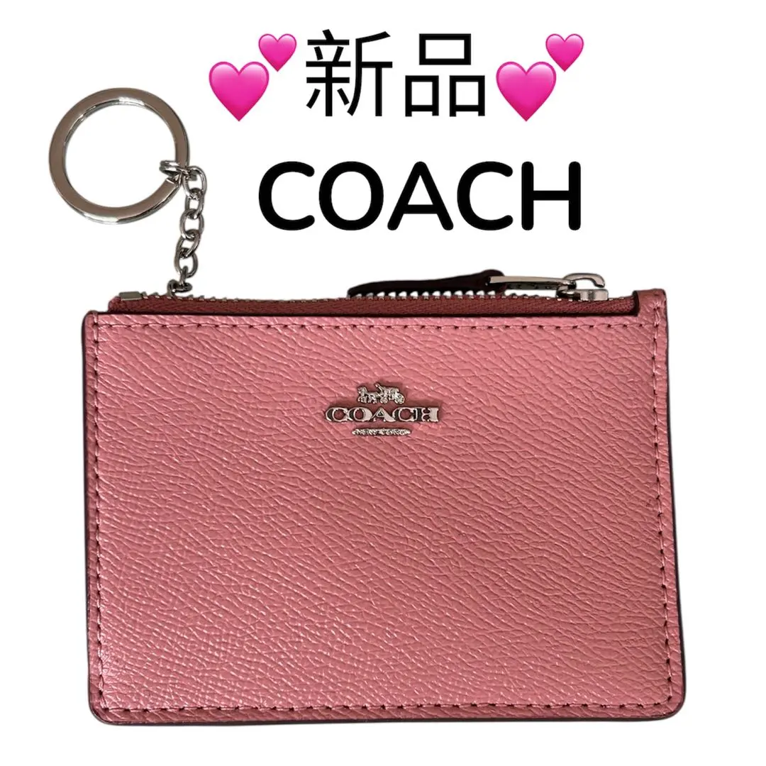 新品⭐️COACH コーラルピンクコインケース キーリング付⭐️パスケース