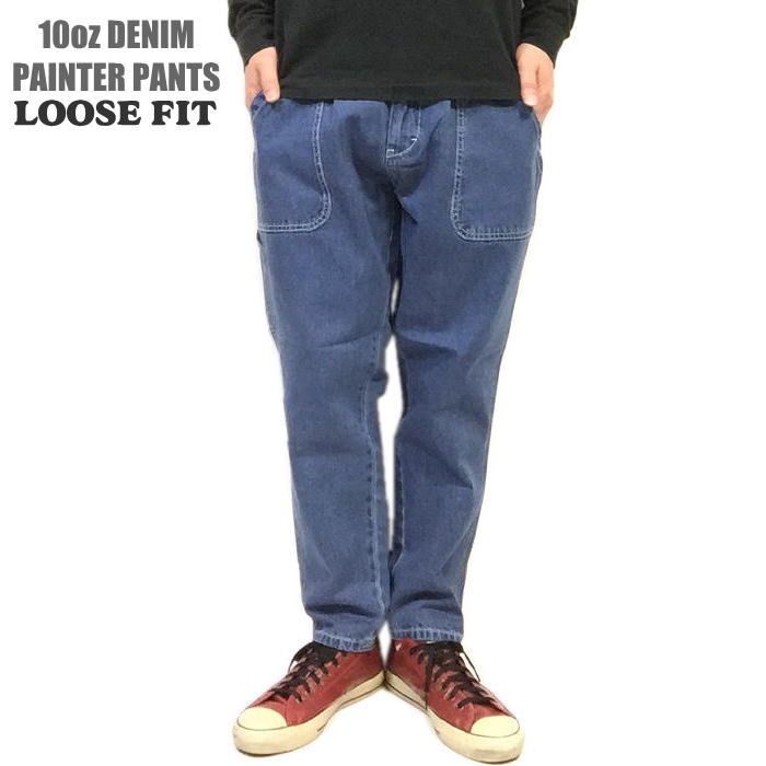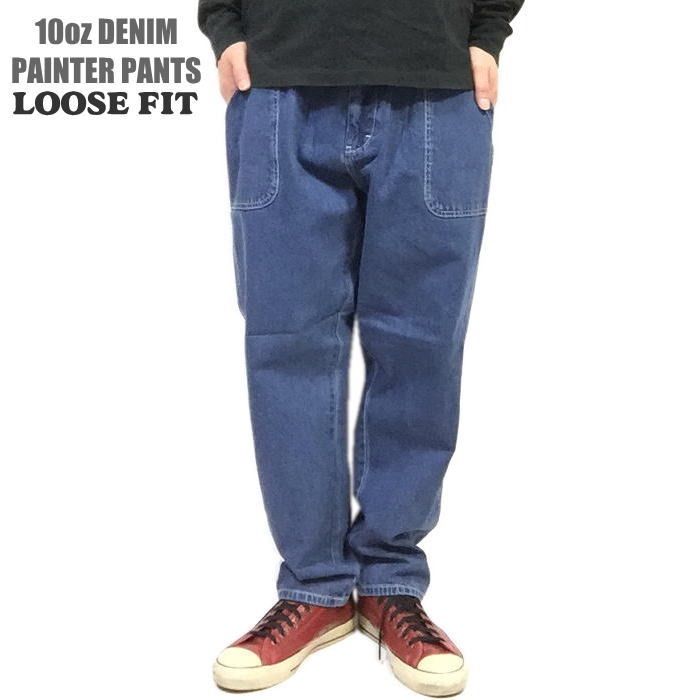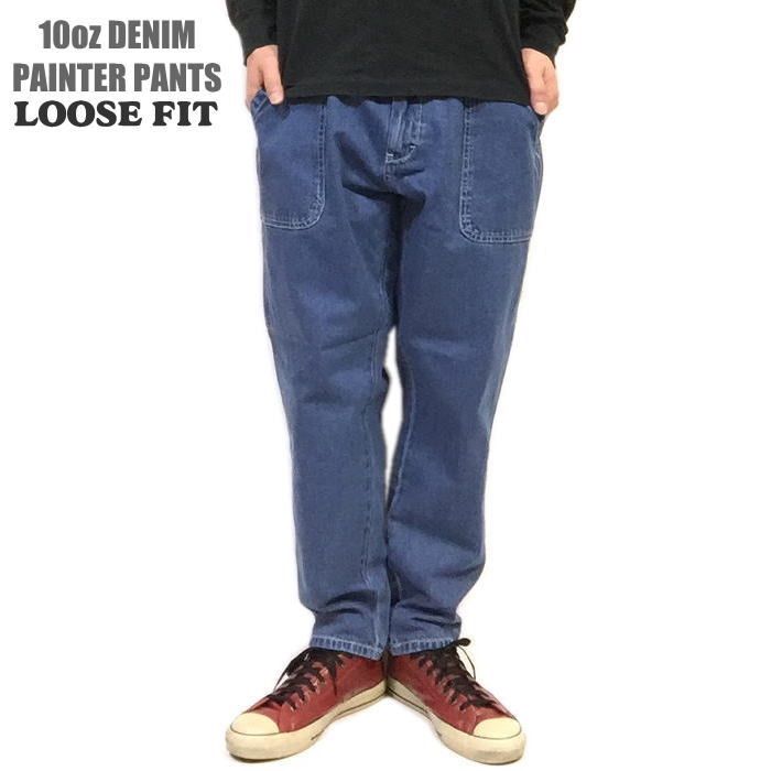 新品正規 L 10オンス デニム ルーズフィット ペインターパンツ 10oz デニムパンツ デニムペインターパンツ 綿100% ストリート アウトドア キャンプ