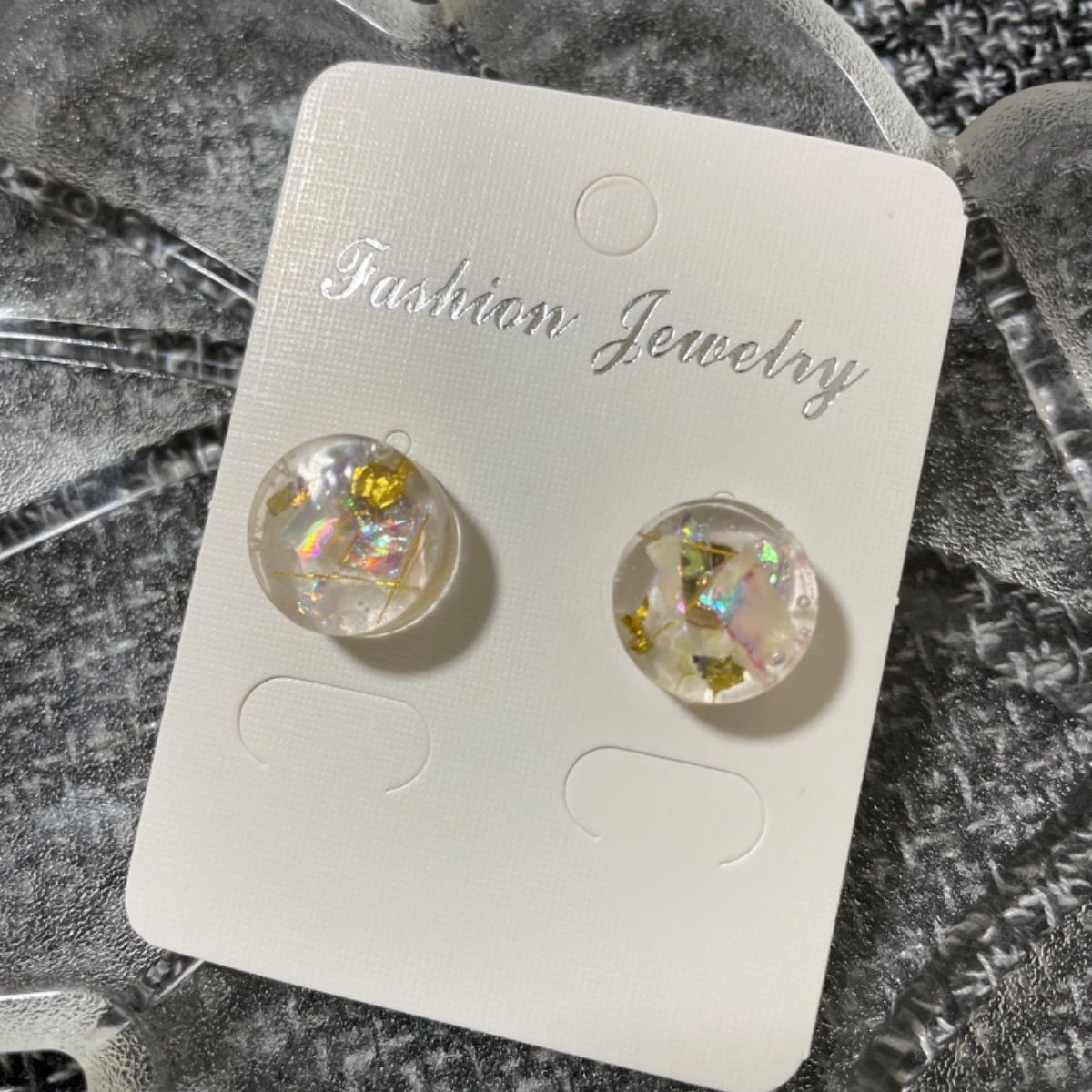クリアベースのレジンピアス〜シンプル