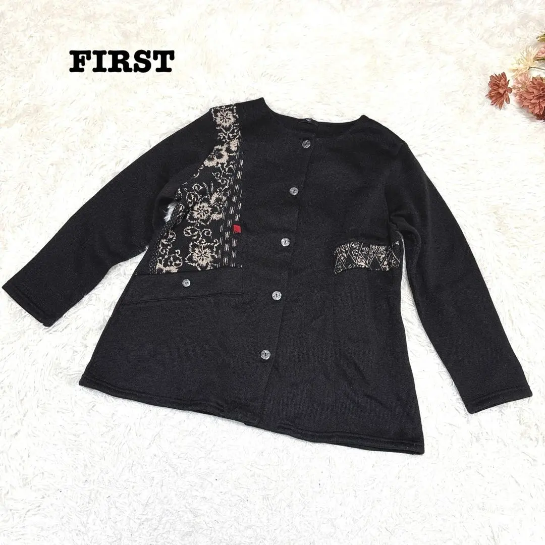 s.1963【ファースト】長袖 カーディガン 裏起毛 個性的 ボタン ブラック