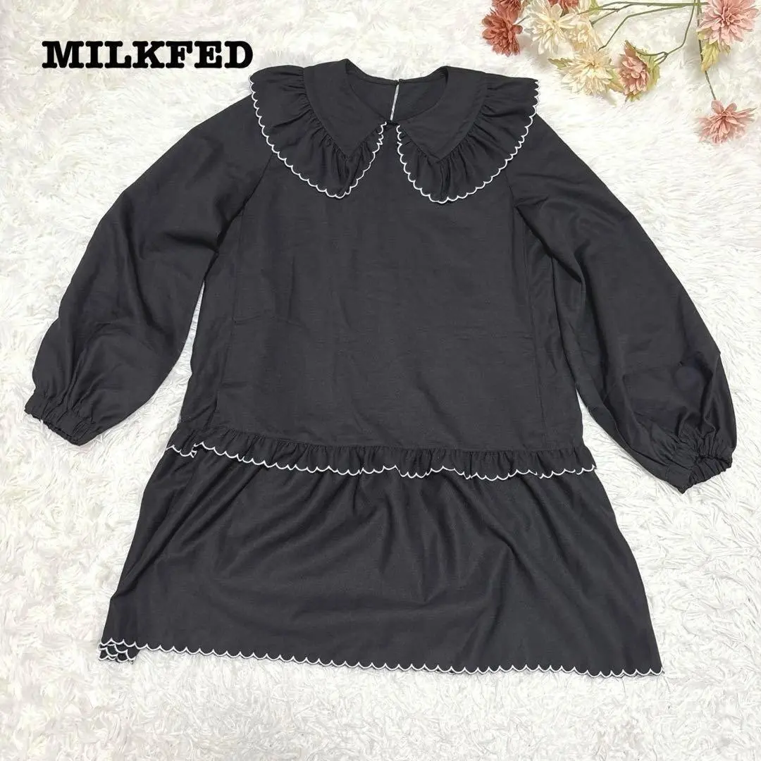 s.803【ミルクフェド】膝丈ワンピース ガーリー 襟あり ブラック Fサイズ