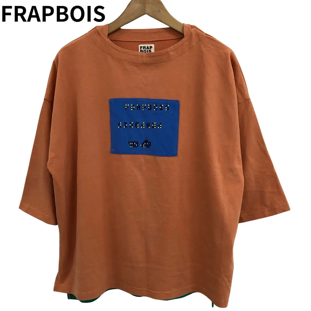 フラボア 半袖 Tシャツ オレンジ アップリケ オーバーサイズ フリー 丸首