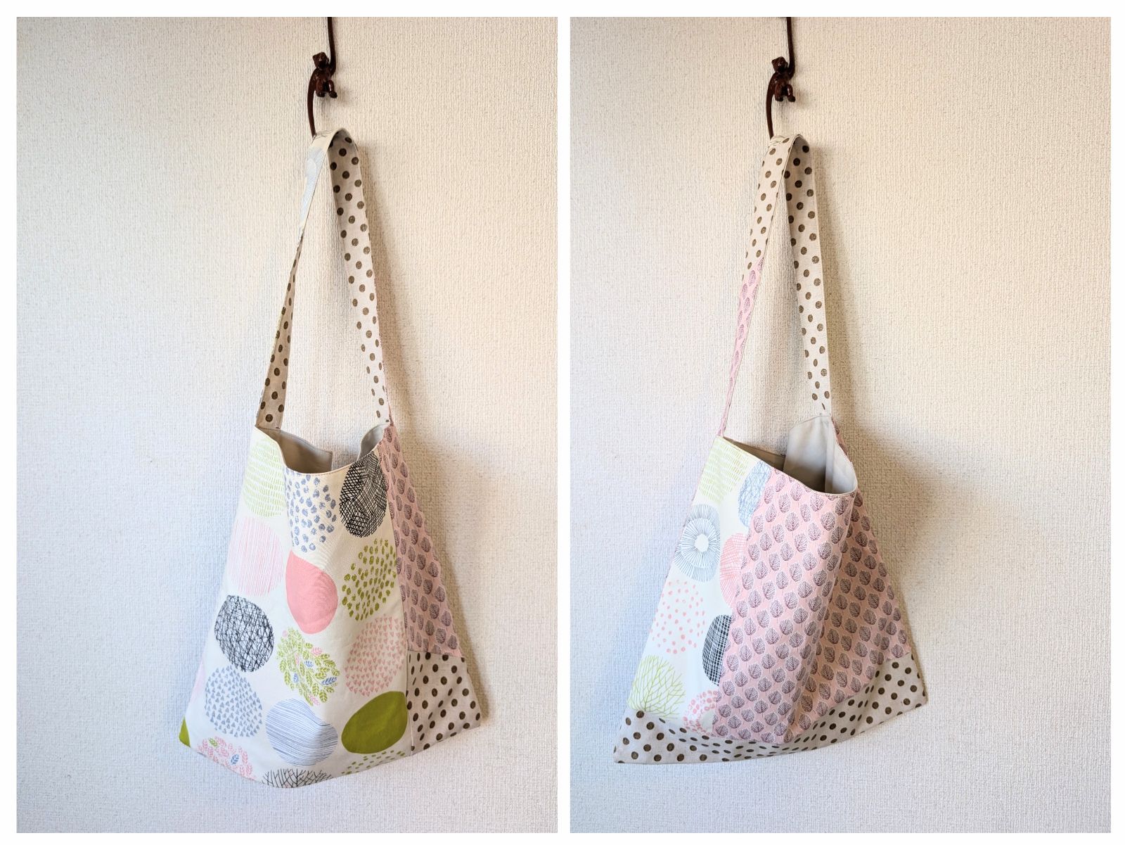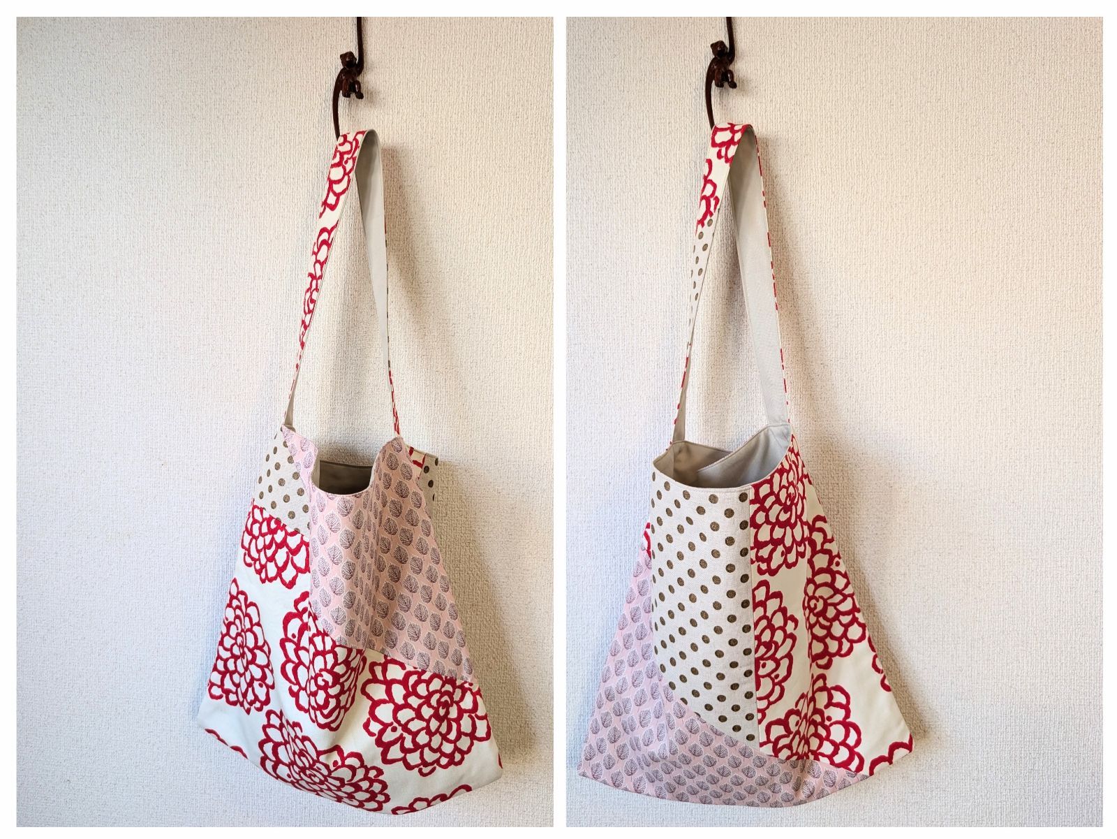 【1点もの】ワンショルダー トートバッグ ダリヤ&水玉